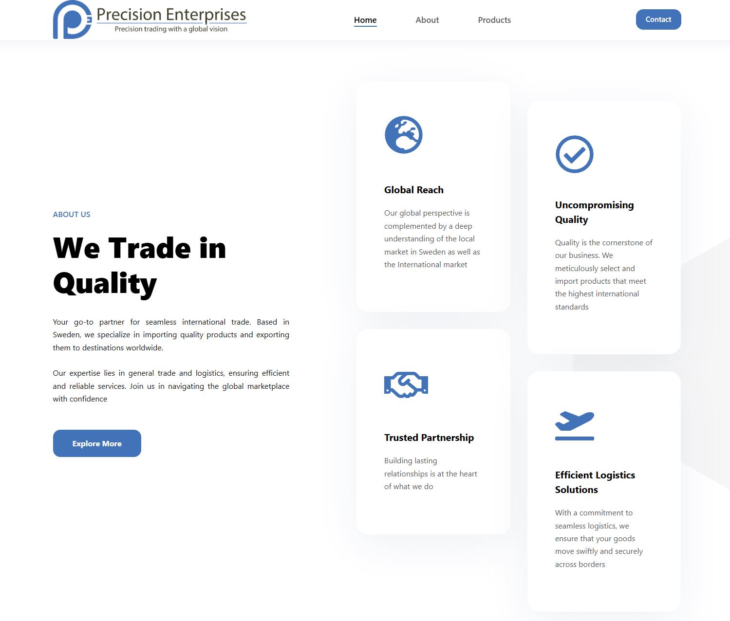 Before this project, Precision Enterprises had no functional website — only fragmented information shared through referrals. This created two main issues: new visitors couldn’t quickly understand what the business did, and the brand felt less trustworthy compared to competitors with established online identities.