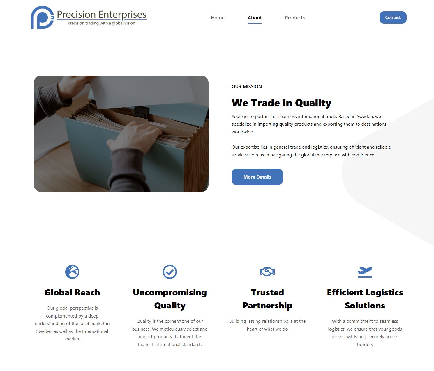 Precision Enterprises is a small professional services company that needed a modern, trustworthy website to clearly communicate what they offer. I designed and built the full site from scratch in Framer, focusing on clarity, credibility, and a clean brand presence.